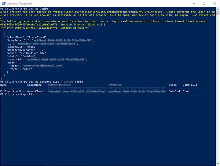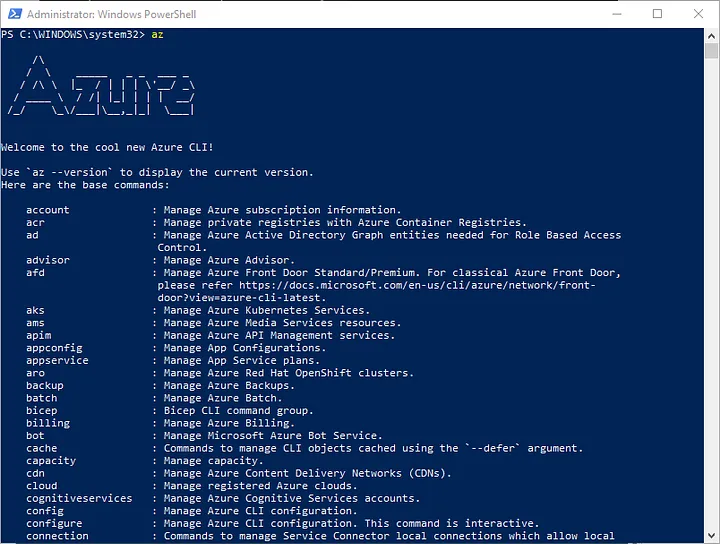 - Afterward, by running the “az” command, we complete the installation of Azure CLI.